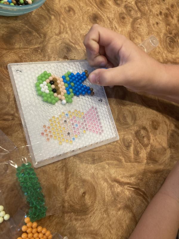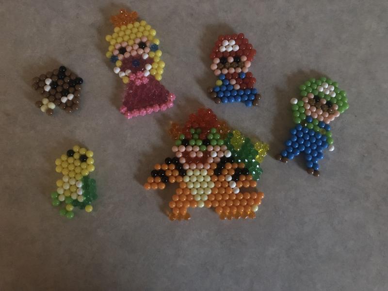 My kids had a great time with the Mario Aquabeads! These are excellent crafts that will keep them having several hours of fun. Fairly easy to use but would be nice if it came with a pen or tweezers to help place the beads on the pattern. The dry time took a little longer than stated on the instructions. The end results were cute Mario figures to decorate their walls.