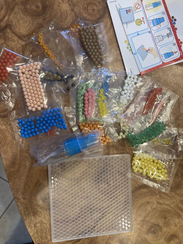My kids and I got our hands into this game. And let me tell you they loved it and really fun to do very easy to use and not messy at all. They spend hours on it! Comes with base plate, sprayer. Has enough beads. Must have