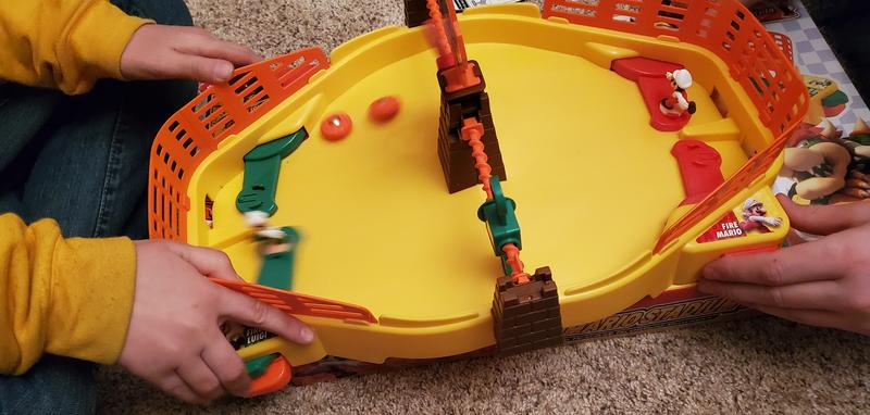 Think of this game like pin ball meets a target game. Your kids get to shoot fireballs across the board to try to hit the targets that will make Bowser "attack" you opponent. Be carful to not shoot your own target though, as Bowser will attack you instead. Ask me how I know. LOL
