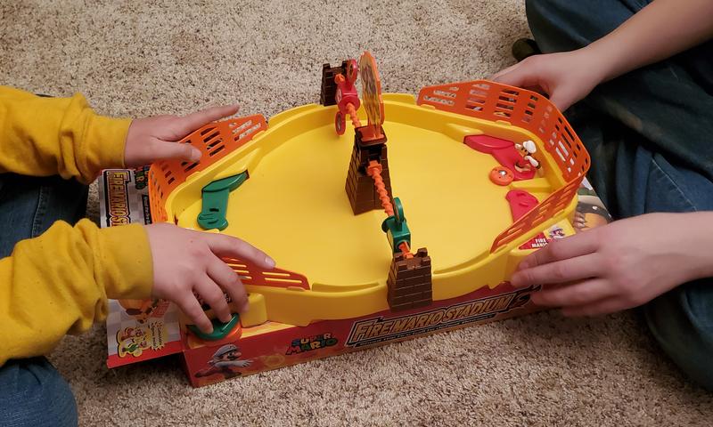 The Super Mario Fireball Stadium is lots of fun! Kind of reminds me of air hockey/old pinball machines. My 4 year old grandson loves it! It's very brightly colored, easy to assemble, and easy to play. He's pretty rough with things, but this game seems very sturdy and is holding up well. I've always been a big fan of Super Mario video games so it was cool to find out they came out with a board game.