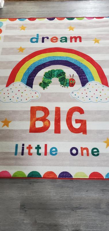 The Eric Carle rug is super adorable and so much fun. I placed it in the playroom for when my grandkids come to stay. It's soft and is loaded with vibrant colors that children love. It is easy to care for too, Just throw it in the wash if it becomes soiled. I love how it looks and my grandchildren will enjoy it for years to come. It's a great accent piece to brighten any room, I would recommend this for rug.