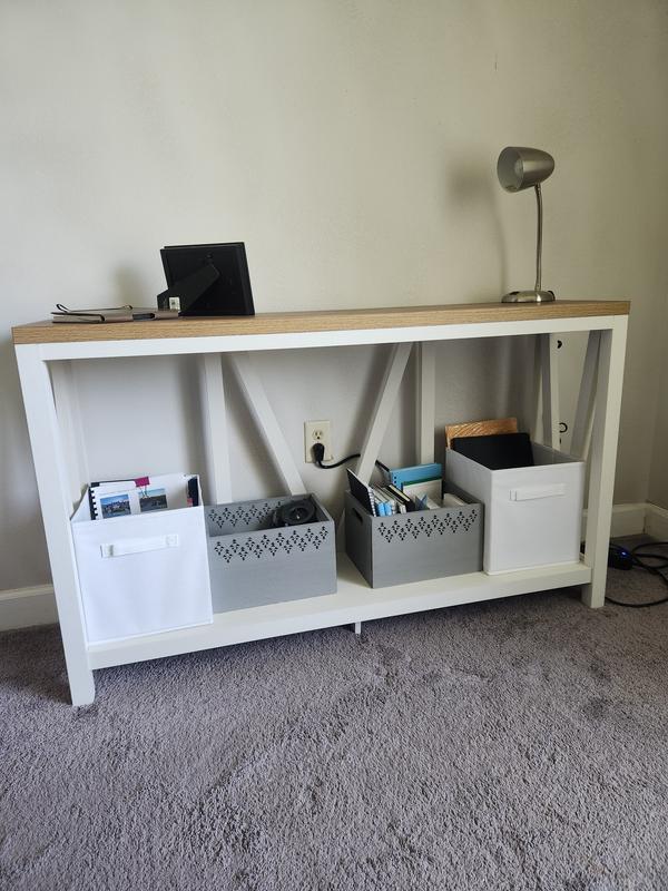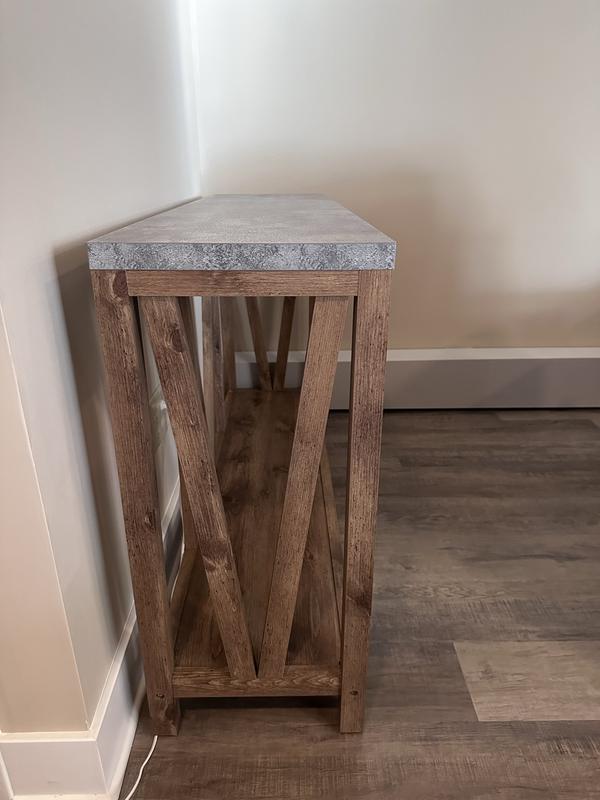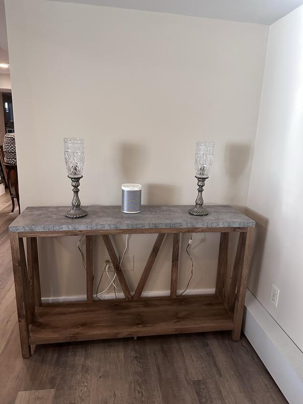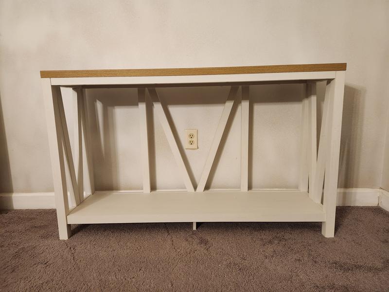 This entry table is a beautiful addition to my home, I love the farmhouse style. Assembly was easy and quick. This table is very sturdy and is able to hold plenty of decorations without me having to worry if it will warp. Definitely recommend this to anyone looking for a classic piece.