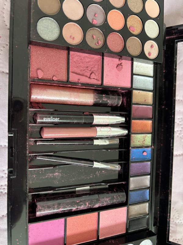 It arrived damaged. Never opened prior to arrival, but so mich of the powdered make up was crumbled and all over the kit. I had to return the kit. There were non in stock at the store, so I don't have one. So disappointing
