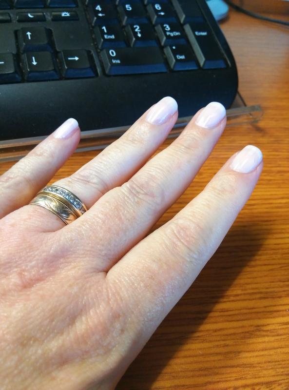You have to shake the bottle before using so it won’t go on streaky After that, it is perfect! One coat for a French manicure look