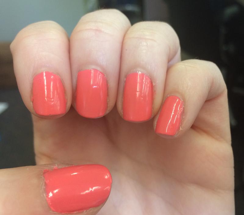 I bought this polish to match a dress I was wearing to a wedding and it was perfect. Not only was the color spot on, but the paint looked so smooth and beautiful. I used this color as a pedicure and used Essie's east Hampton cottage for the manicure. I used the gel setter to top both off and a week later, still no chips and they look as great as ever! I really hope Essie keeps this color, because I would definitely buy again. The perfect fresh shade of coral.