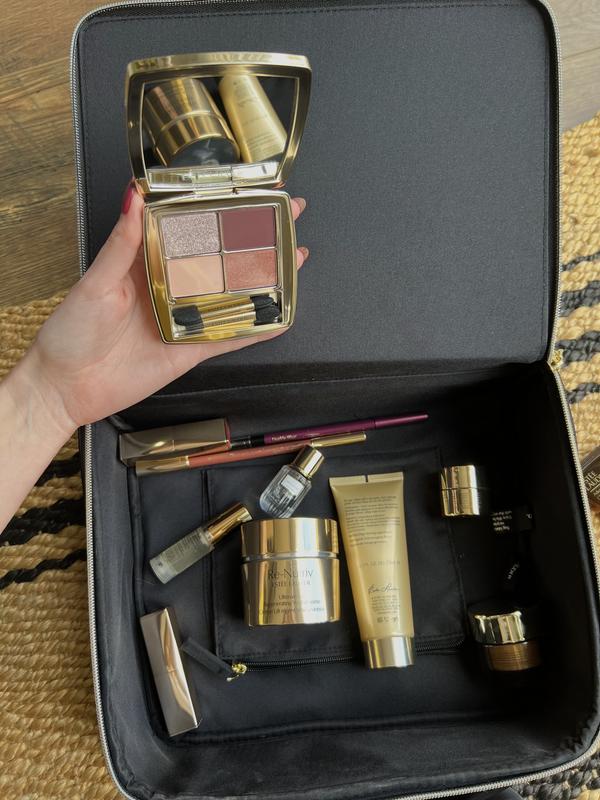 I have never seen a more exquisite and lavish gift set. It comes with makeup, skincare products, and a lovely case. The cleanser is fantastic for taking off sunscreen and makeup without stripping the skin. For those with dry skin like myself, the moisturizing creams are wonderful and so hydrating. The lipsticks are silky, and the makeup is would suit a wide range of skintones. It's a fantastic set that would be a lovely present for anyone who needs a little extra pampering around the holidays. Gifted by esteelauder