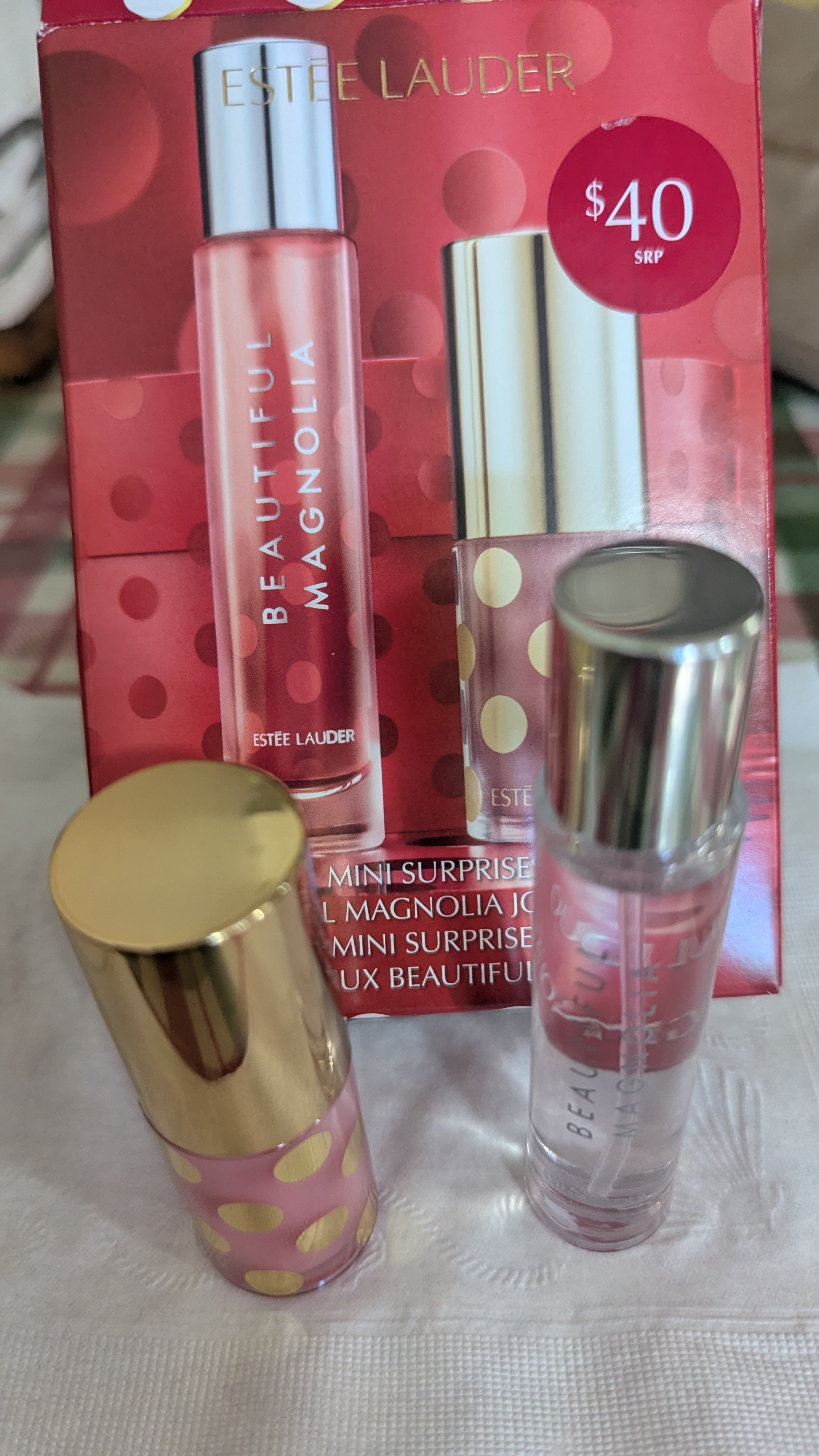 Estee Lauder has the best gift sets for the holiday season, and this travel size set is no exception. The cute polka dot lip oil is light and lasting with minimal pink color. The perfume spray is compact for travel and purse. The scent is not overpowering, somewhat floral and green, fresh and clean. A great gift! Estee Lauder is the best cosmetic company in my opinion.