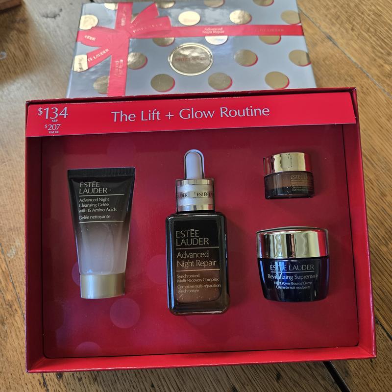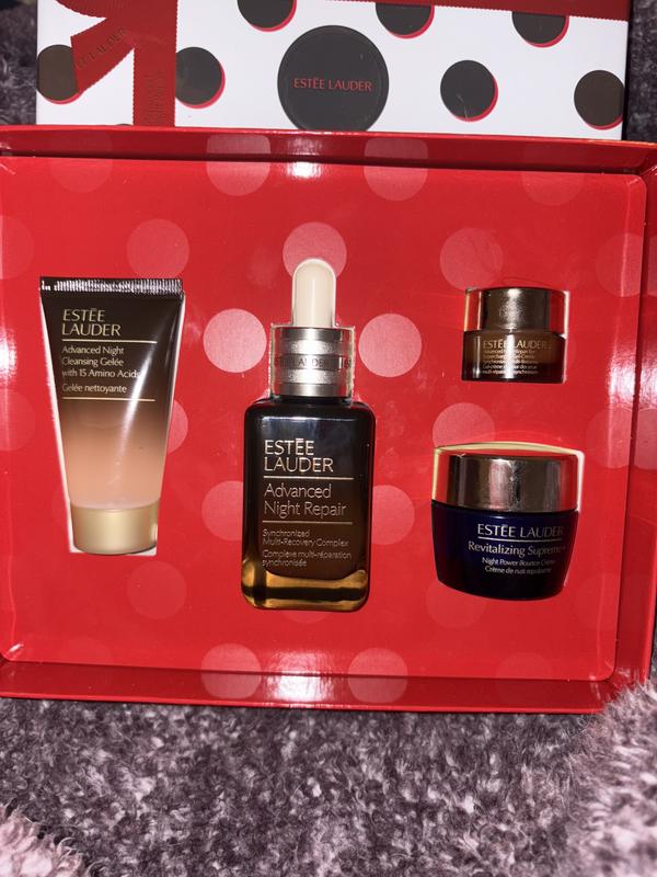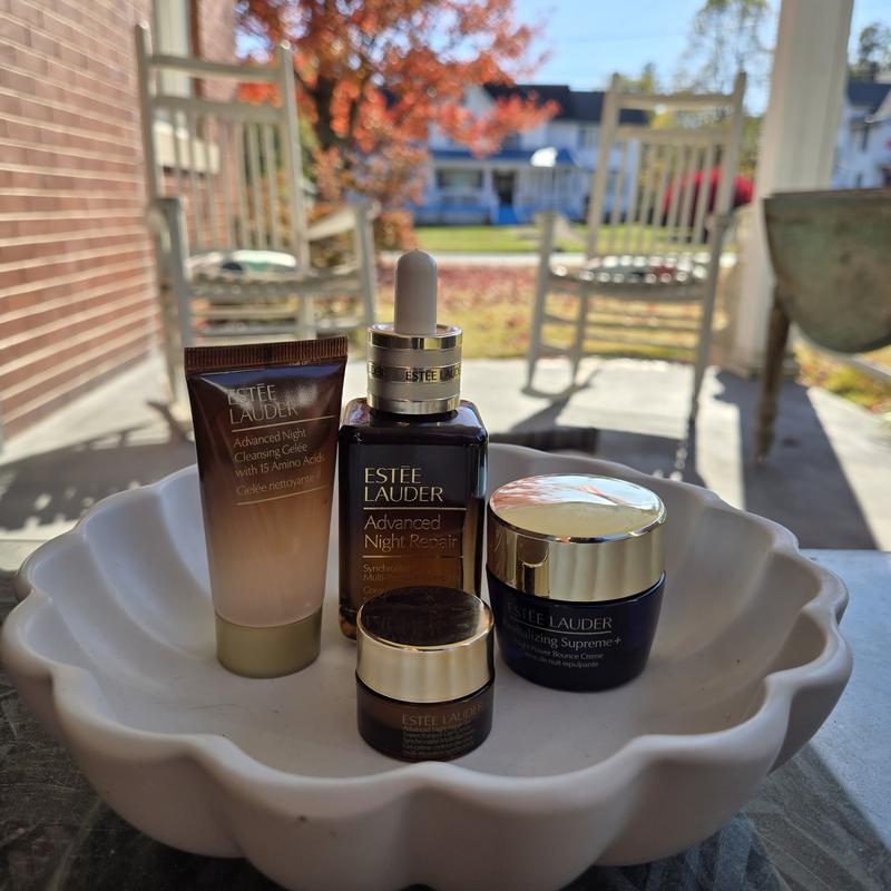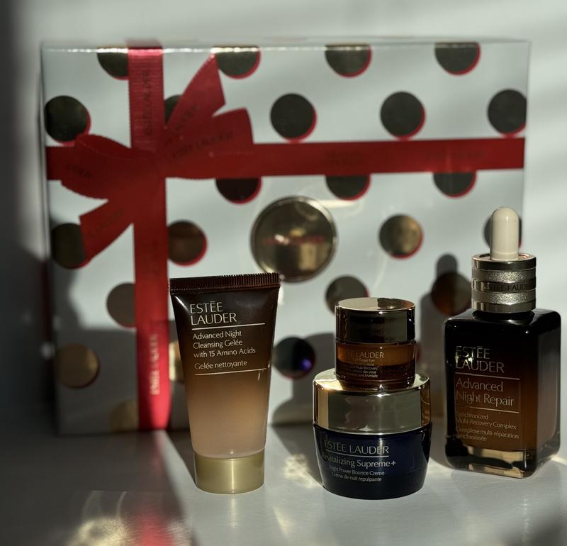 I’ve been using the Advanced Night Repair Serum and Revitalizing Supreme+ Night Power Bounce Crème since November 2024, and they’ve truly transformed my skin. This holiday set is an incredible value. It includes a full size serum plus travel sizes of the Cleansing Gelée, Night Crème and Eye Gel-Crème, making it a perfect resupply and add on to my routine. My skin feels soft, hydrated, and refreshed every morning. The packaging is stunning and secure, ideal for gifting or keeping for yourself. A thoughtful, luxurious set that never disappoints!
