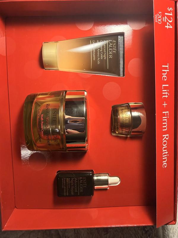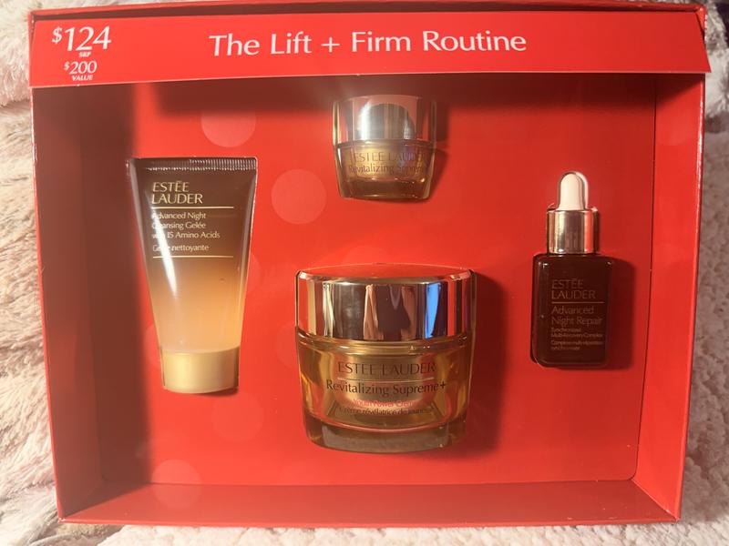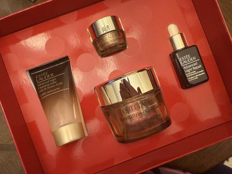 The Estée Lauder Revitalizing Supreme + holiday kit is both a morning and night skincare routine to help improve firmness and elasticity. The Night Cleansing Gelee glides on easily and has an enjoyable scent. Light lather and leaves my skin feeling soft without any tightness. The Advanced Night Repair Serum is lightweight, silky texture spreads easily and absorbs quickly. The Youth Power Crème is rich & creamy with a subtle luxurious fragrance. I have very dry skin so this was definitely a hydrating moisturizer my skin soaked up but didn't leave me feeling heavy or greasy. The Youth Power Eye Balm is fragrance free and a little goes a long way. It leaves a luminous finish. It's recommended to blot excess with a tissue but I never did and never felt any greasiness - just hydrated. I enjoy using this system as it feels pampering and leaves my skin feeling smooth, hydrated and soft to the touch. I received this product for free from Estee Lauder for testing and review purpose.