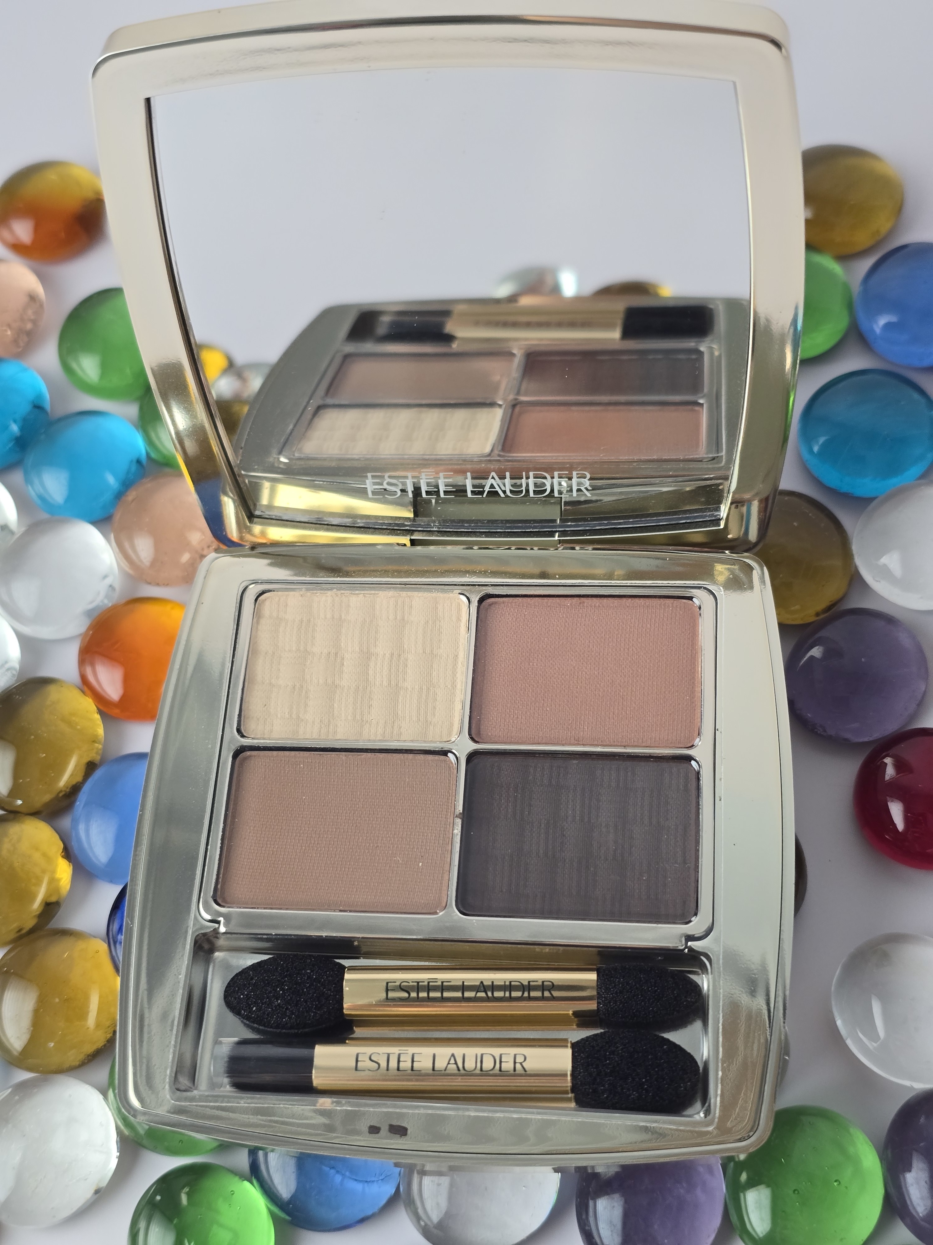 Impressive is the word I'd use to describe these shadows. I didnt need to go over the same area more than once. Pigment is at 100% from one swipe across the eye lid. These are true to the color you see in the pallette when applied. Color lasted atleast 8 hours, as i wasn't keeping track that well. The colors didn't fade, smudge, or migrate during that time. The mirror case is not only beautiful, but well made to stay sealed to protect the contents. I really appreciated that each kind of applicators needed for perfect application was included. These made every step easier and application more precise. I received this product for free from Estee Lauder for testing and review purposes.