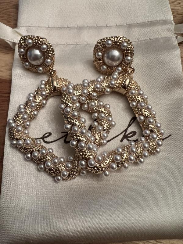 These earrings are so gorgeous! I love the pearl accents! They will dress up any look and aren’t heavy. I can’t wait to wear them again! Definitely an eye catcher. Love them!