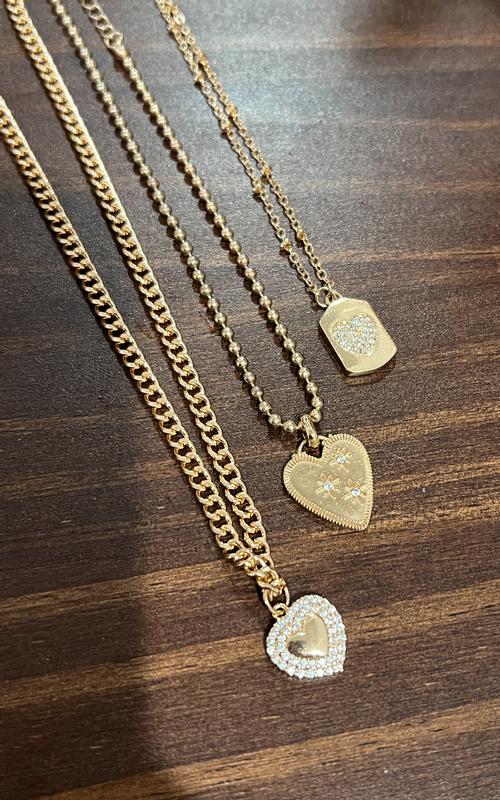 I love this necklace! I like that the chain necklace can be worn seperately and the other three are easily put on with one clip! So trendy and high quality!