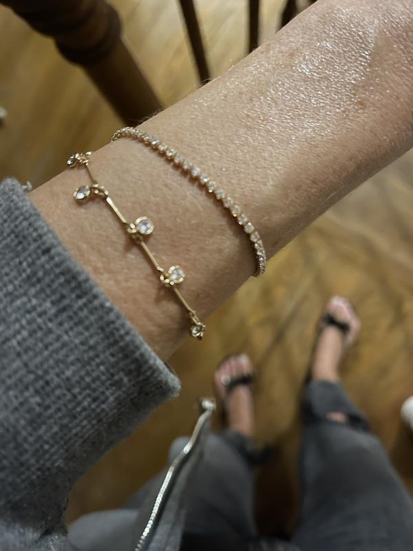 I LOVE this set - but more specifically the tennis bracelet. It's so dainty, detailed and gorgeous! The droplet is more fun, while the tennis bracelet is gorgeous/classy. Love wearing them together but they are stunning apart as well. Note - they aren't adjustable, so they might err on the side of tight or super loose depending on your wrist circumference.