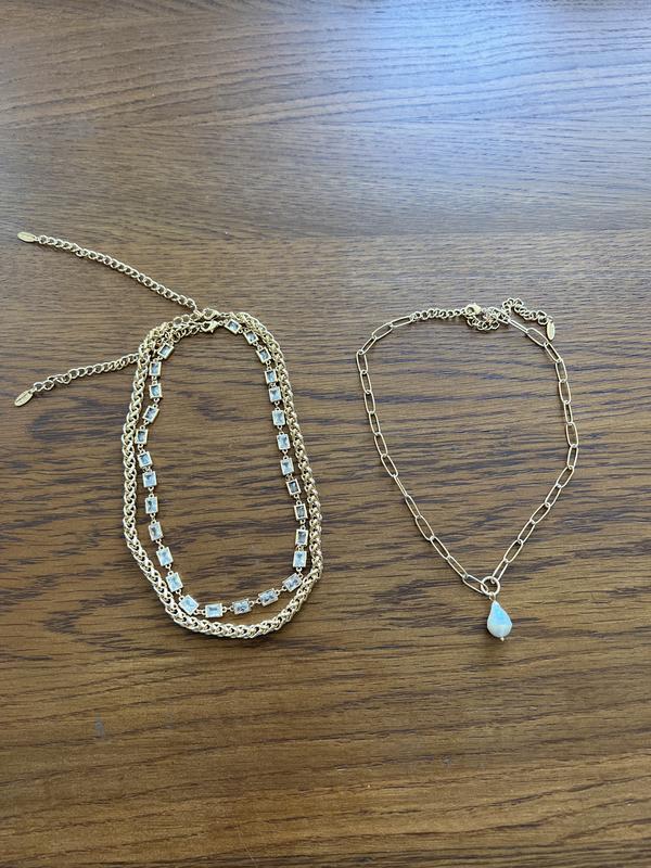 Love this necklace set! It’s great that you can wear them together or separately! Each necklace is unique! One with a little bit of sparkle and another with great chain detail!
