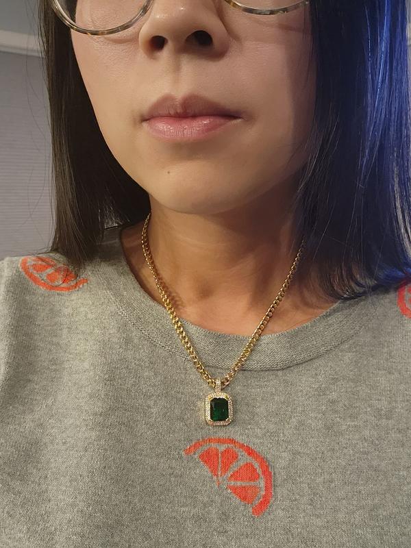 I love this necklace. It’s my favorite. The green pendant is absolutely gorgeous. Its the perfect size, color, and my favorite necklace.