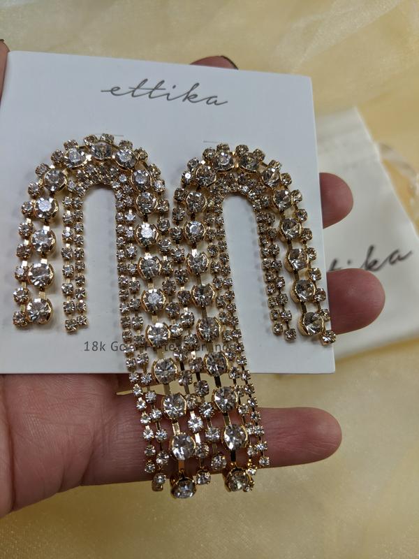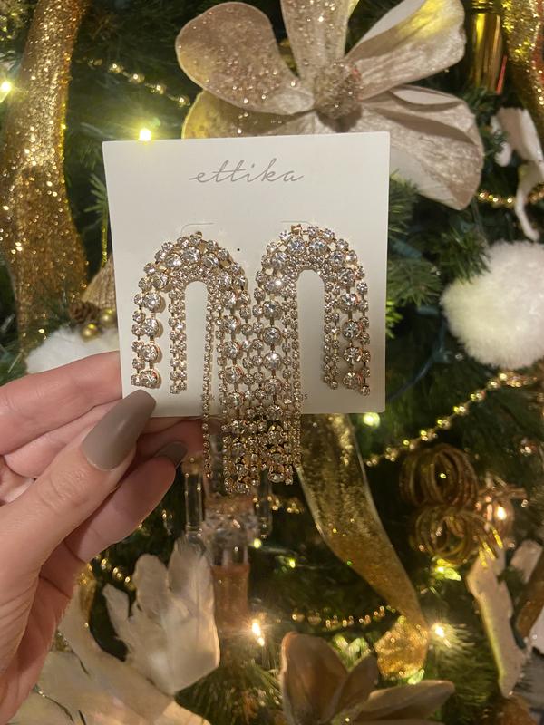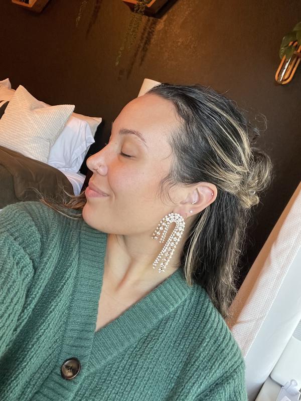 The perfect glam statement earring for my NYE look, and can't wait to wear them again for all upcoming bridal events! They added the perfect amount of glitz for the holidays, and are such a fun statement piece for really any occasion. Great quality, not too heavy and didn't bother me whatsoever the entire night!