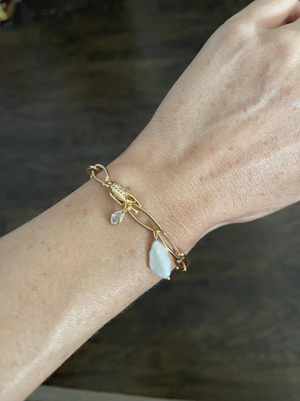 I have been wearing this bracelet so much it goes with a lot of my outfits and I love the little pearl; so cute!