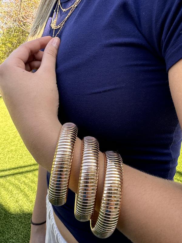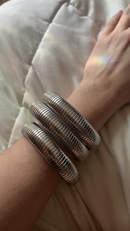 I get so many compliments on this bracelet set! I love that it stretches, especially because I do have larger wrist and hands. And I love how flexible and comfortable the bracelets are. It is great quality and still holds the shine and beauty after all I’ve put them through. I also love the set that I picked because it comes with one silver and two gold. So I can wear all of them on the same wrist or I could put two on one arm and one on the other and style it however I like. Highly recommend recommended!