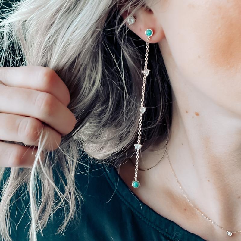 These dangling green opal earrings are so classy! Will pair perfectly with outfit!