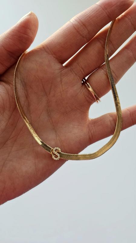 Initial Herringbone 18K Gold Plated Necklace