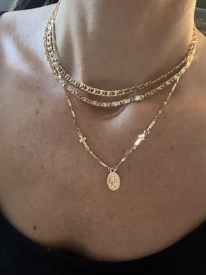 This is a beautiful piece. I love the small cross detail because it makes this necklace so unique and delicate. Beautiful 3 piece necklace combo.