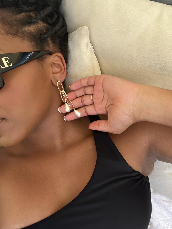 These are quite literally the most beautiful earrings I've ever seen! I LOVE how these dress up a casual outfit and also look beautiful dressed up or for my business casual office attire! They're lightweight and super comfortable to wear all day!