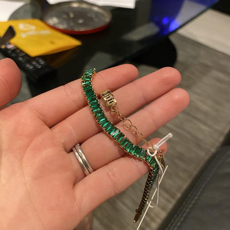 This anklet is so vibrant and beautiful! It just adds the perfect flair and sparkle to you look!! Beautiful green.