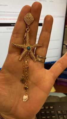 Love the delicate detailed texture and pattern of these earrings that capture the essence of a real starfish. These are perfect with vacation dresses to wear by the ocean or sea feeling like a real mermaid. Bigger than I expected but not that heavy, comfortable enough for all day wear. 🧜♀️🐚✨