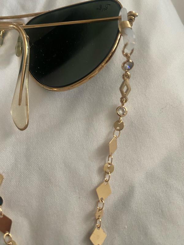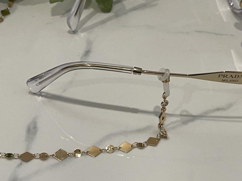 I have been wanting a glasses chain for so long and this one is perfect. It looks interesting with the diamonds and the way they catch the light is stunning. It easily fits my glasses and never snags my hair.