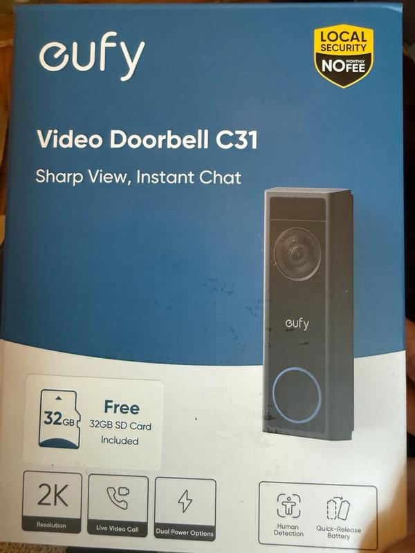 eufyC31 Smart Wi-Fi 2K Wired or Wireless Video Doorbell with 24/7 Recording and No Monthly Fees