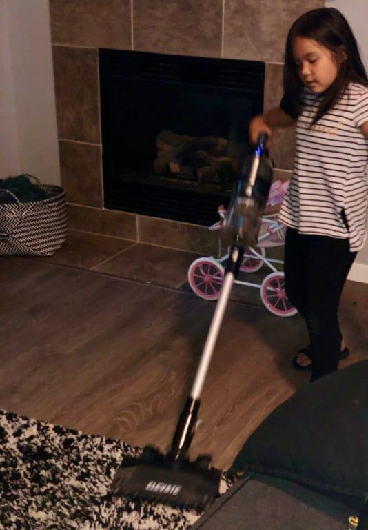 I really was impressed with the suction power of this vacuum, especially since it was a cordless one. The only con of this vacuum is the battery life is only about 30 minutes & I was unable to do the whole main floor of my home & the stairs before the battery died. There is not a second battery with this vacuum, so you have to wait for it to charge before continuing. The vacuum itself is so lightweight, so it's easy to use & maneuver. Highly recommend this vacuum!
