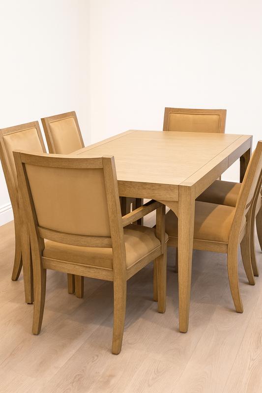 I’ve had the Everleigh 7-piece dining set about a week ago now, and overall, I’m very pleased with it. From a style standpoint, the set instantly upgrades our dining room, its clean lines and neutral upholstery on the chairs give it a modern yet comfortable look that fits well with our décor. The table surface feels sturdy and has a finish that shows minimal reflection, which I appreciate. The chairs are surprisingly comfortable for a dining set, both the side chairs and the armchairs have plush backs and seat cushions that feel supportive during a longer meal or conversation. In terms of functionality, the table size works well for our household. It provides ample space without feeling oversized in our space. The chairs slide under the table easily when not in use, which helps keep the room open. After a week, it appears durable: no visible scratches or wobbles on the table, and the chairs remain stable. When it comes to ease of use and comfort, the chairs upholstery is soft yet sturdy. While upholstery looks good, it may require prompt cleaning if something gets spilled. One minor drawback: the table’s finish shows fingerprints and smudges more than I hoped, so it does require a light wipe now and then to keep it looking clean. Durability is still a bit of an open question since we’ve only had it a week, but so far, the construction feels solid, and there are no squeaks or shifting. The materials feel good. Final verdict: I would recommend this set for anyone looking for a stylish, comfortable dining set. If you have a mid-sized dining space and want something that looks upscale but doesn’t cost a fortune, this is a strong contender. Just be aware that the upholstery might need maintenance, and if you’re in a very high-traffic household you may want to monitor finish wear on the table over the coming months.