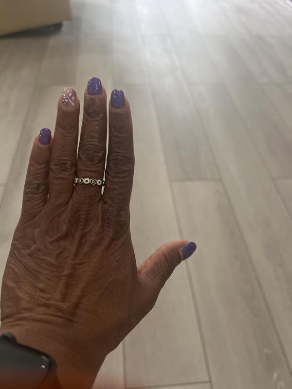 Absolutely love this ring! It is perfect for your ring finger. I am so happy I purchased it in sterling silver. A great addition to my evil eye collection!