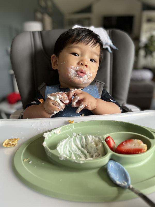 Ever since my son started solids, we had him using ezpz products. He just graduated from his first foods set, now he uses the mini feeding set. It's safe, easy to clean, and beautiful to look at. We love it so much, we use it every day. AND we also bought the lid that goes with this plate.