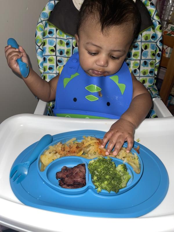 I love the divided sections for portions, and my baby loves using the fork to eat!