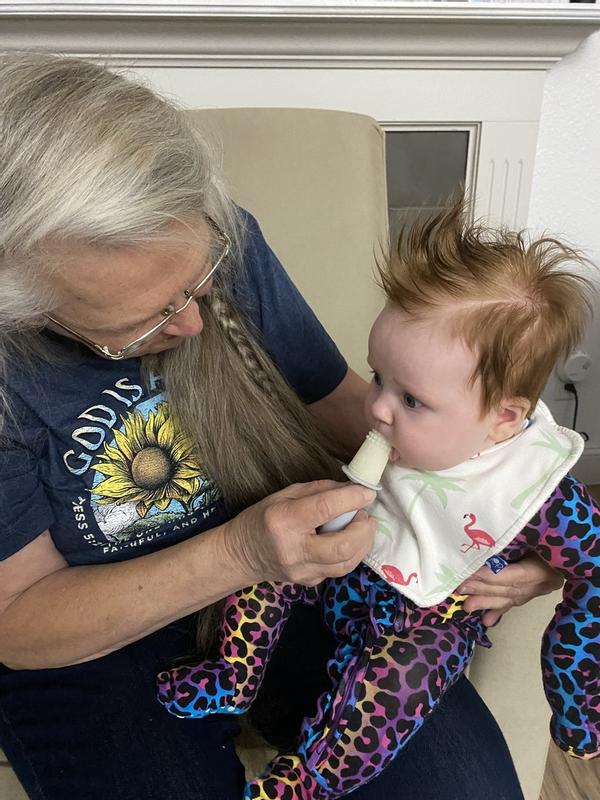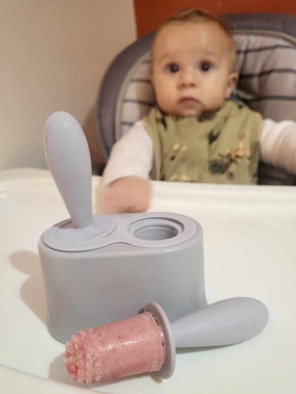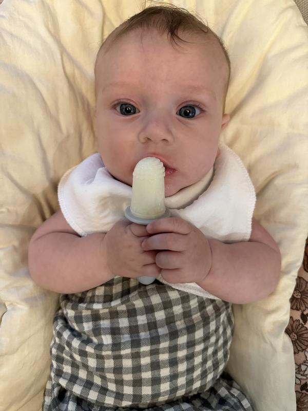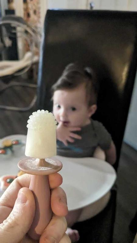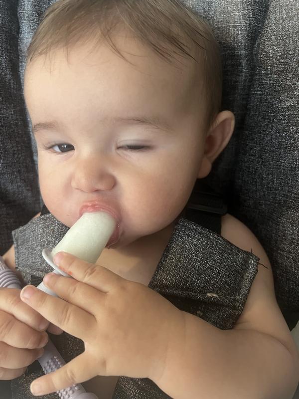 I purchased the Tiny Pops for our 6 month old grandson. He is teething with his 2 bottom teeth. He doesn’t want to eat or drink. I just tried them with his formula and he loved it!! He actually bit down on it and ate. He was able to hold it just fine The Tiny Pops really helped his sore little gums/ mouth and he got some nourishment as well. I’m so glad I purchased 2 sets for him. EZ PZ thanks for a great product!!