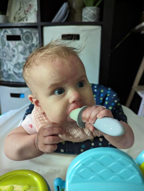 I love the tiny pops for beginning eaters because it helps a child explore new foods and temperatures. It encourages hand to mouth feeding. One of my favorite items.