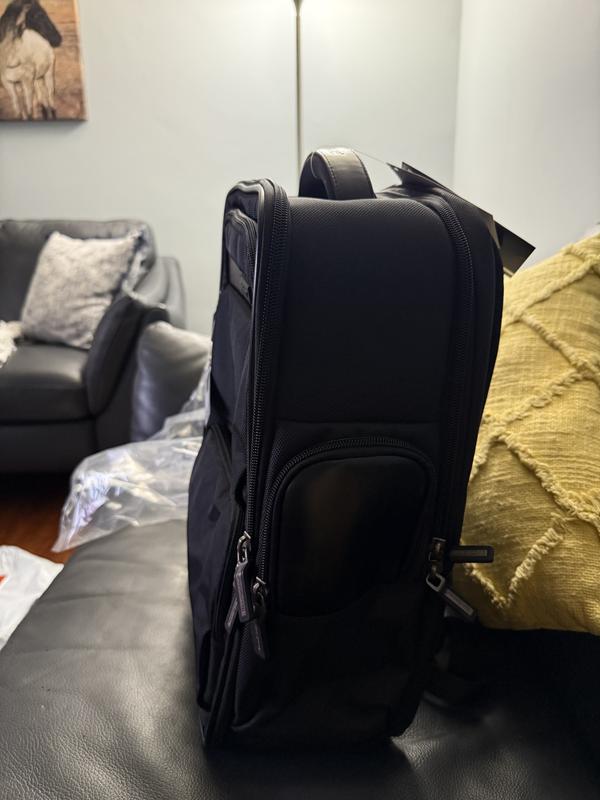 The bag is way smaller than advertised, it is not a large bag as claimed online and definitely is small sitting at the top of the back; I am 6'2. Furthermore, the interior lining is NOT blue as shown online from the pictures, it is dark gray. The delivery also too forever, I live in NYC and it took nearly two weeks to come from California by standard shipping. It was just not worth the wait.