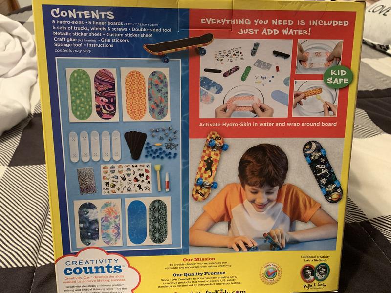 My kids were very excited to play custom their skates and build them. It’s really fun making them, but the only thing is that it’s really hard to put the screws in so that you can attach the wheels. It was impossible to put the screws all they way in so the wheels stayed all loose and they won’t skate. Other than the problem with the screws it’s fun making this skateboards and are super easy to customize.
