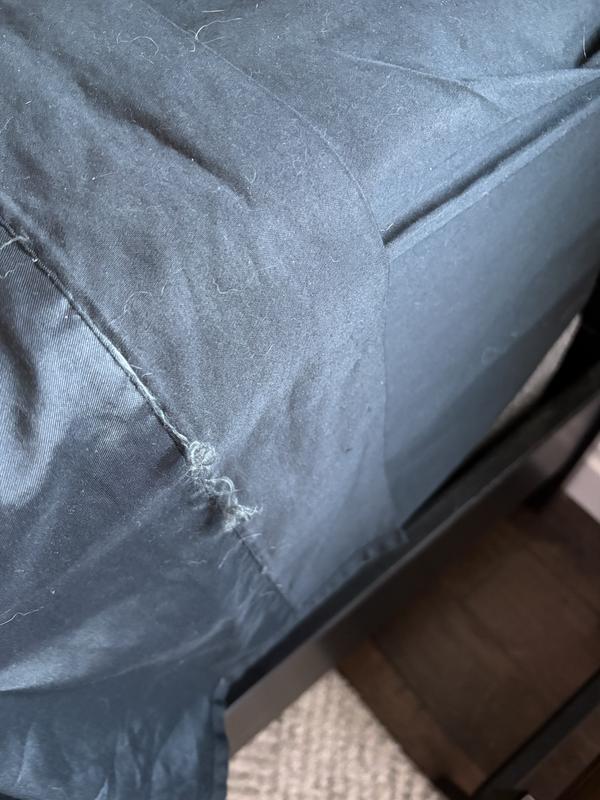 Rough texture with short fibers. Scratched me all night. I've washed a it a few times to get is softer and that has not helped. Lots of loose stitching from wash.