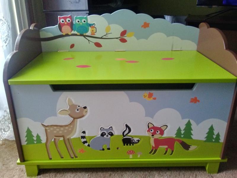 This is such a cute and useful toy chest. I looove the design, it's adorable. It's made very well, quite durable. It holds a good amount of toys, stuffed animals, dolls, etc. It isn't hard to set up even if you don't have prior experience putting together toy chests. Safety hinges are a a nice touch so it doesn't slam on little fingers. You can use the top as a seat or place stuffed animals on top. I can definitely recommend this whether you're in the market for a toy chest or if you know of someone with small children who would be in need of this.