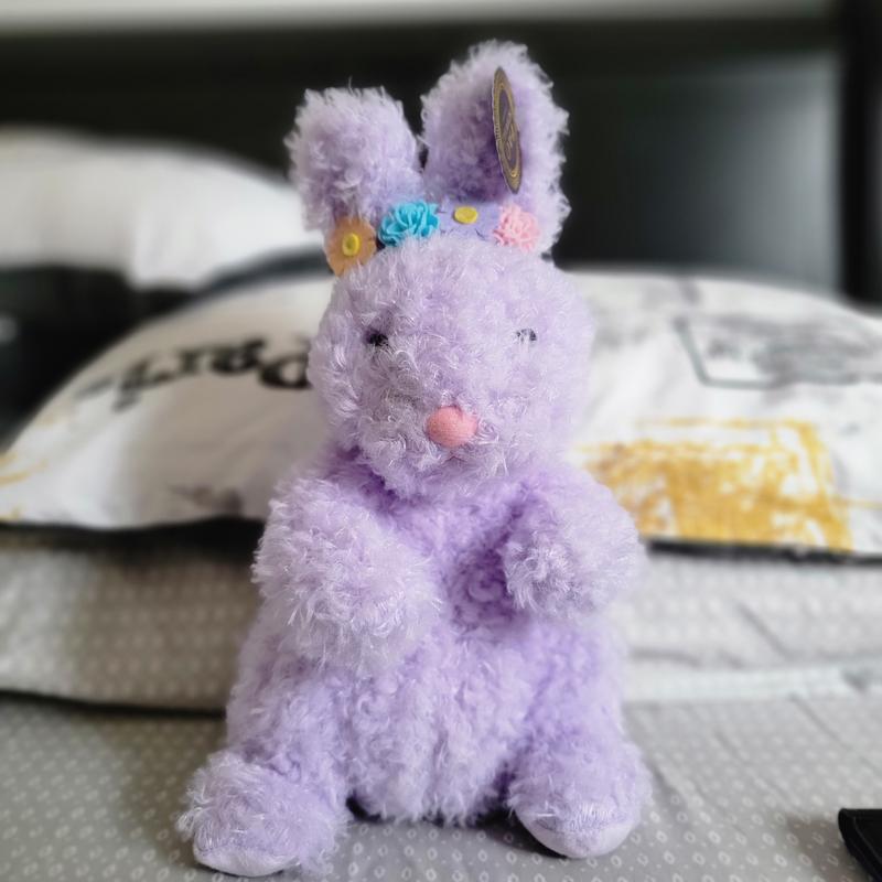 I got this FAO Schwarz purple stuffed bunny a couple of weeks ago. I love how soft and cute this bunny is . I love the purple color of the bunny. It is so cute. So perfect for spring time and Easter. I love that I got this stuffed animals.