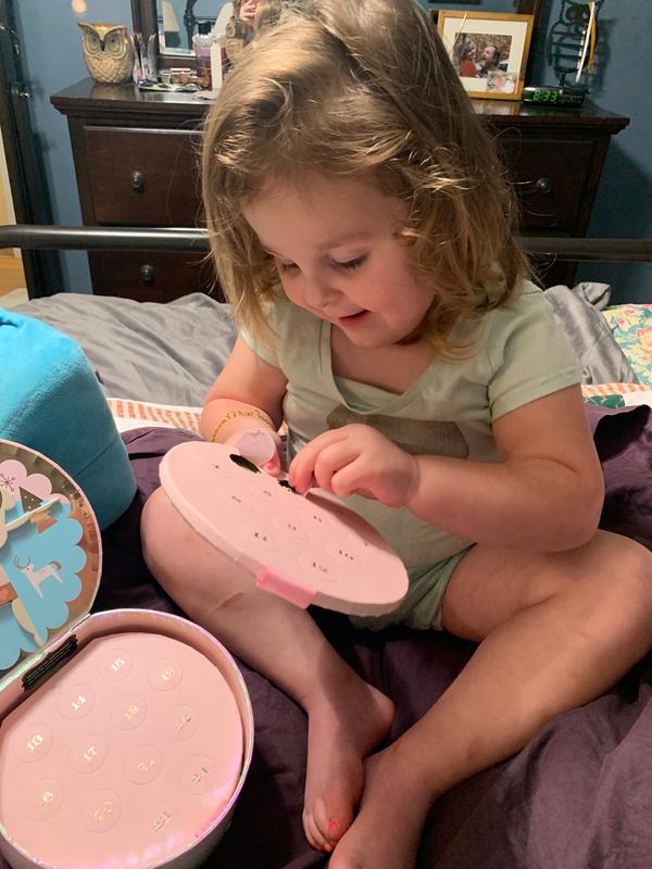So my little girl is in kindergarten so when I get her dress I let poke out the next charm. I love that it is interaction she loves to get up and see what is next. I would say this good for a birthday gift or Christmas present. My little girl loves hers