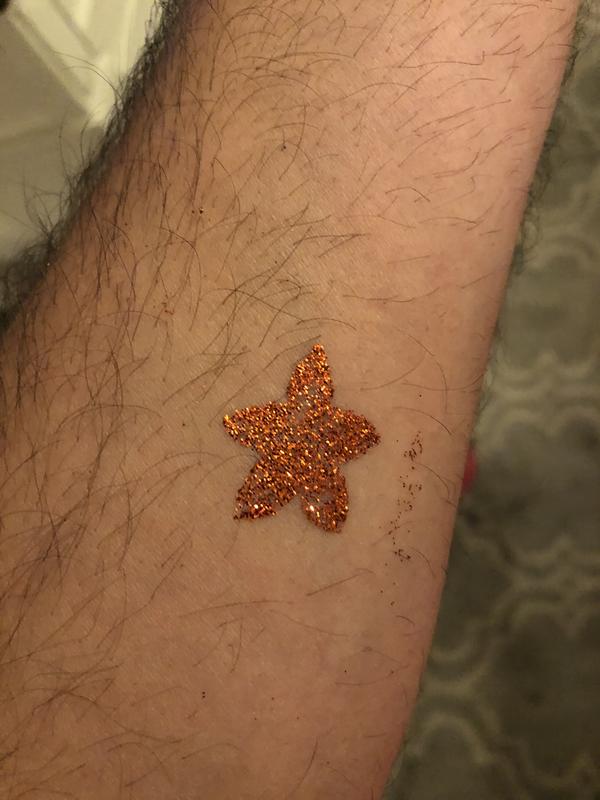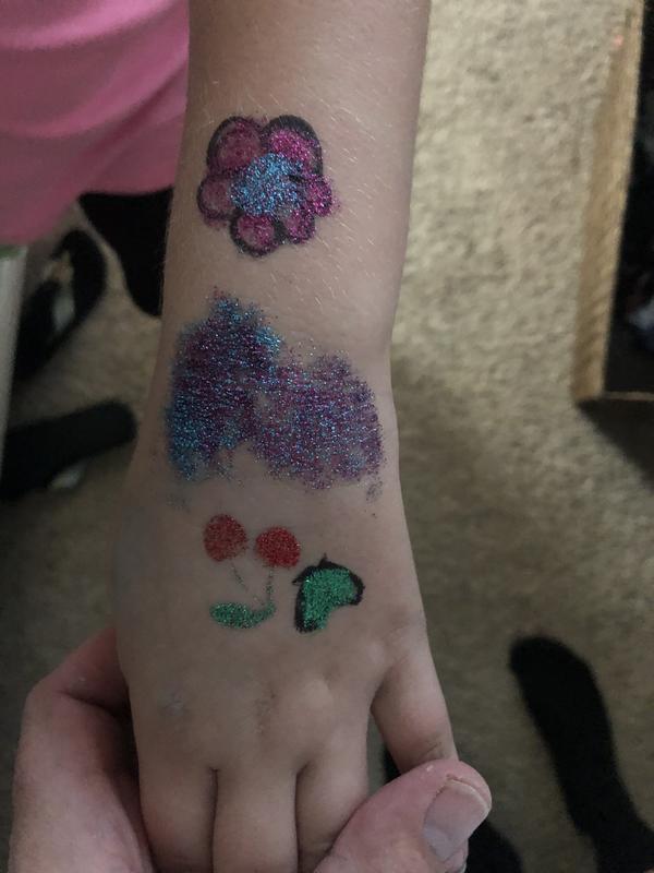 My daughter absolutely loves this! I love that she can have abrautiful tattoo with glitter and it not come off. Highly recommended for anyone with little ones. This is also easy to come off so that it's not on for days and days at a time