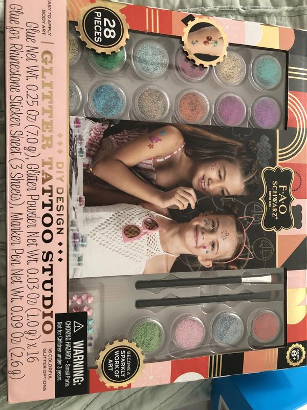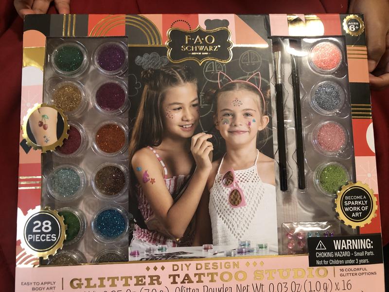 Found this glitter tattoo set and got it for my girls. They love glitter and the fake tattoos so when I found this I thought it was something that fun they could do. They love that they can make tattoo designs with glitter. I definitely recommend this all the glitter loving girls.