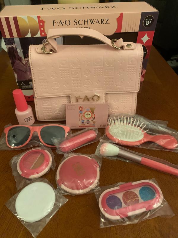 My 3-year-old niece loves to play with this makeup set when she comes to our house. The purse is good sized, but is light enough for her to carry around. She was quickly putting makeup on just like her aunt! The eyeshadow, lipstick, powder, and nail polish are realistic looking. It seems to be durable, but hopefully the hinges on the makeup items hold up to toddler play! Such a cute little set!