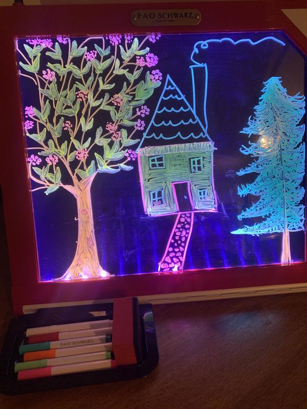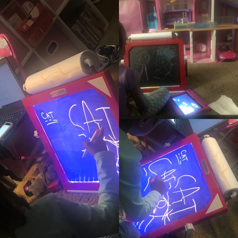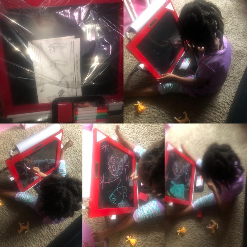My kids absolutely LOVE this 3 in 1 LED Tabletop Easel. It’s such a great item to have for kids that love to draw. I love how the LED lights up and reflects off of the bright markers. Easy to clean, and store. The roll of paper is another great feature. Kids love to draw pictures and then tear the paper off to save for later! Chalkboard is a typical chalkboard. Kids love it! Great product!