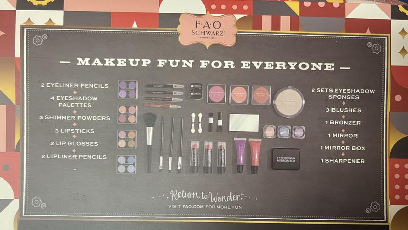 This makeup set has been a huge hit in my house. I have 4 daughters and boy were they excited when I gave them this. They spent hours and hours back to bskx day after day playing either different ways to put it all on for fidfdernt looks. It is nice quality and applies and stays on well