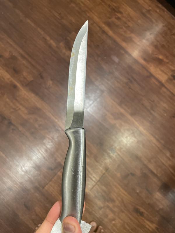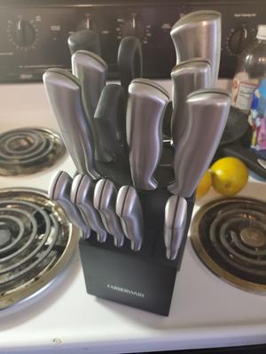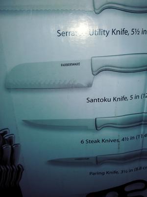Farberware is definitively not living up to its name with this knife set. I bought the set April 24 and it hasn’t been a month yet and there’s already rust on them. The knives retain water, and has rust discoloration, who wants to be shaking water out of knives even after they’re suppose to be dry? Not I. I’m very disappointed with this purchase. This was a total waste of money