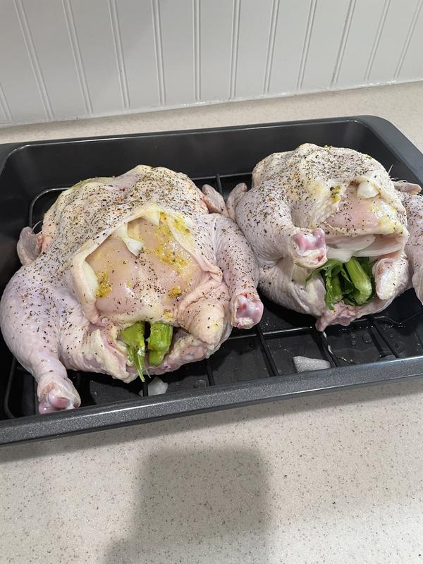I recently baked a whole chicken in my new roaster, with the rack, and it came out delicious. I absolutely love it. Thank you